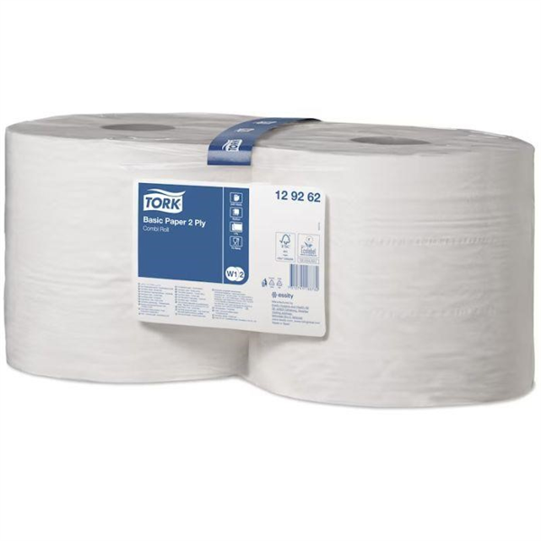 PRODUCT DESCRIPTION. Tork Basic Paper Combi Roll 2Ply Perforated 1000m is a high-capacity, cost-efficient solution designed for everyday wiping and hand drying needs. With a strong and absorbent 2 Ply construction, this versatile paper is ideal for general cleaning tasks, light spill management, and hand wiping. The roll is perforated for easy tear-off, ensuring convenience and reducing waste during use. Designed for compatibility with Tork Floor or Wall Stand Dispensers for safety and efficiency, or the Tork Maxi Centre-feed Dispenser for smooth one-hand dispensing, this multipurpose roll delivers durability, staying strong even when wet. At 1000m in length, it minimises refilling, saving both time and effort in busy workplace
