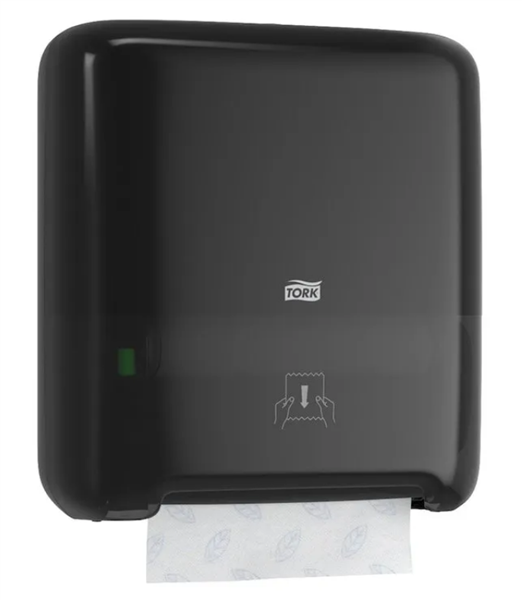 Tork Roll Matic H1 manual dispenser in black, designed for efficient and reliable dispensing of Tork H1 roll hand towels.