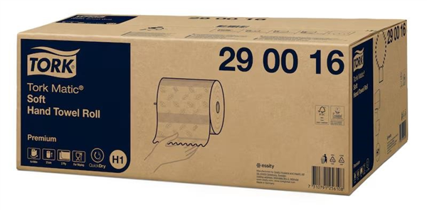 . Premium softness with stylish blue Leaf décor for an elegant presentation. QuickDry™ technology delivers superior absorbency and faster drying. One-at-a-time dispensing reduces waste and promotes hygiene. Designed for Tork Matic® dispensers for easy maintenance in busy washrooms