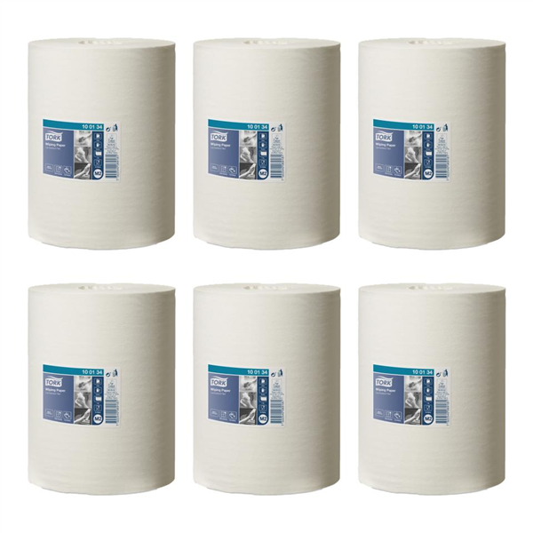 Tork 100134 Centrefeed Wiping Paper is a high-capacity 1-ply roll designed for both hand and light surface wiping in professional environments.