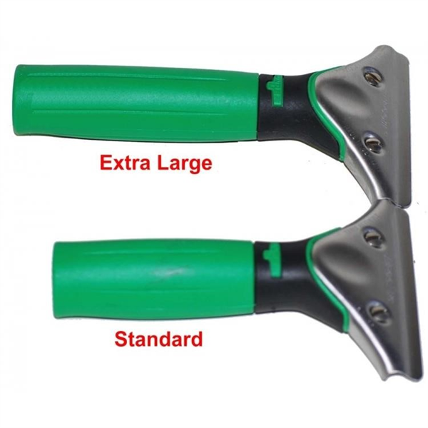 is designed with a larger, longer grip to provide comfort and control for users with bigger hands. This ergonomic, lightweight squeegee handle reduces hand fatigue during extended use, while the non-slip grip ensures secure handling in any conditions. The spring-loaded clamp mechanism allows for quick and easy rubber or channel changes, making it highly efficient for professional cleaners. Measuring 18cm in length, this handle is compatible exclusively with Unger S and S-Plus channels, and is not suitable for Ninja channels