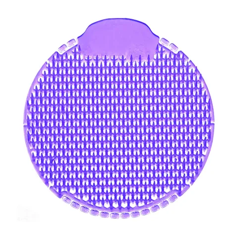 . Double-sided slant design prevents 99% of splashback. Soothing lavender fragrance. 6” diameter fits smaller urinals perfectly. Freshens stronger and longer than comparable screens. Low VOC and environmentally compliant. Individually packaged for hygiene. Provides up to 30 days of continuous freshness