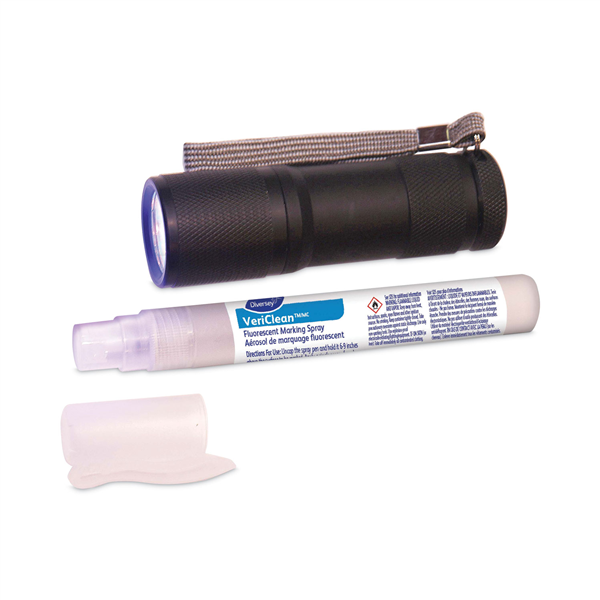 is a marking tool developed for use with the VeriClean cleaning validation program. This invisible spray applies a 6-inch circle that can only be detected under UV light, making it ideal for assessing cleaning effectiveness on horizontal, vertical, and even underside surfaces. Compatible with iMap Software for data capture, the spray supports cleaning performance tracking by facility, room, surface, and cleaner, ensuring compliance and continuous improvement