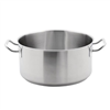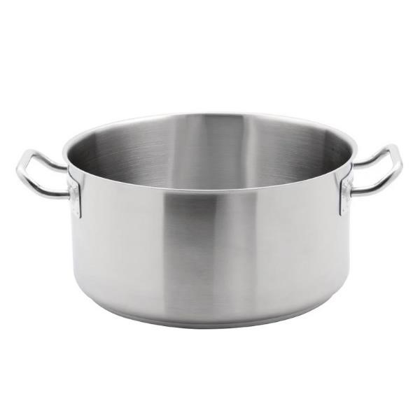 Part of the best selling range from Vogue, these stainless steel pans offer excellent professional quality at very competitive prices. Each has been made from high quality heavy duty 18/10 stainless steel and each also features a stay cool welded handle that will ensure the user isn't exposed to high heat and the pan is easy to transport. Dishwasher safe. Useful pouring lip. Sturdy stay cool welded handle. 0.8mm stainless steel body with 6mm aluminium base. Suitable for use with all cooking surfaces, including induction. Capacity: 12.5Ltr. Dimensions: 160mm (H) x 320mm (Ø). Material: Stainless Steel. Weight: 3.76kg. Compatiable with: Vogue stainless steel lid 320mm (M952)