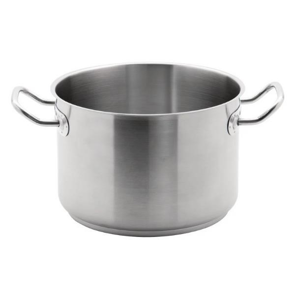 Part of the best selling range from Vogue, these stainless steel pans offer excellent professional quality at very competitive prices. Each has been made from high quality heavy duty 18/10 stainless steel and each also features a stay cool welded handle that will ensure the user isn't exposed to high heat and the pan is easy to transport. Dishwasher safe. Useful pouring lip. Sturdy stay cool welded handle. 0.8mm stainless steel body with 6mm aluminium base. Suitable for use with all cooking surfaces, including induction. Capacity: 7Ltr. Dimensions: 160mm (H) x 240mm (Ø). Material: Stainless Steel. Weight: 1.86kg. Compatiable with: Vogue stainless steel lid 240mm (M950)
