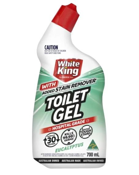 Specially formulated liquid gel that cleans and actively removes stains, Kills 99.99% germs under the rim, around the bowl and in the ‘S’ bend, leaving your toilet fresh and sparkling ‘White King’ clean