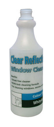 is a durable, pre-labelled refill bottle designed for use with the Whiteley Clear Reflections glass and surface cleaner.
