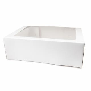 White milkboard 6" tall cake box with lid and clear window - 12"x18" rectangle