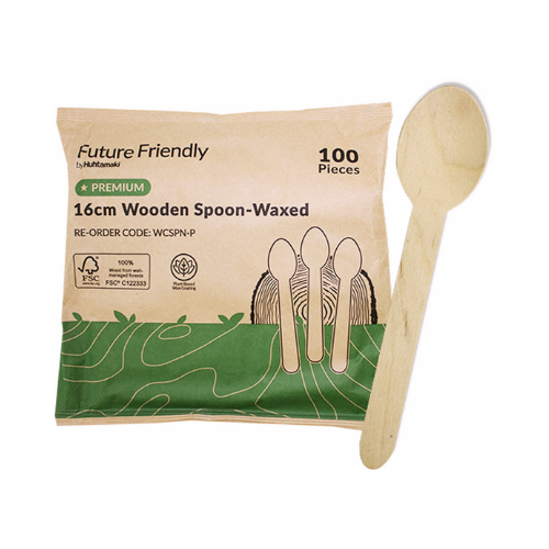 . FSC® 100% Premium Wooden Cutlery Wax Coated Spoon 160mm